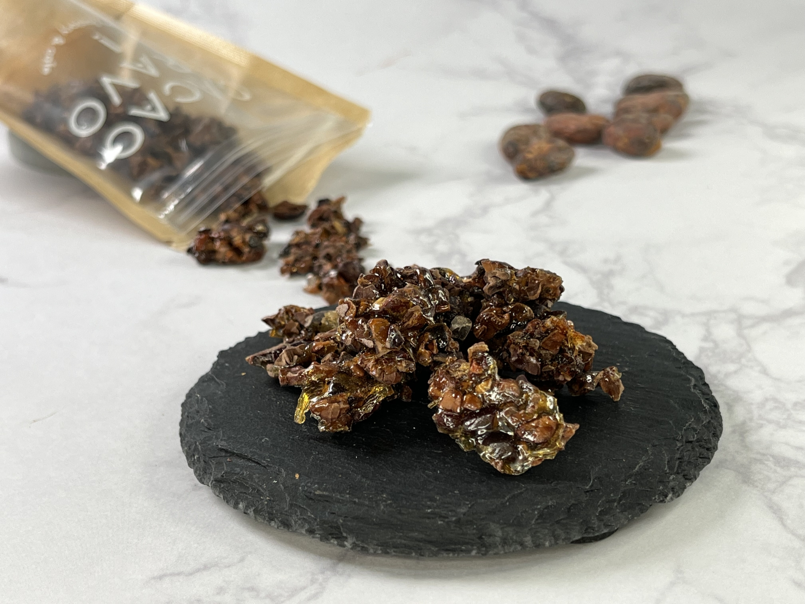 焙煎し砕いたカカオ豆(カカオニブ)を、きび砂糖でコーティングした一品です。