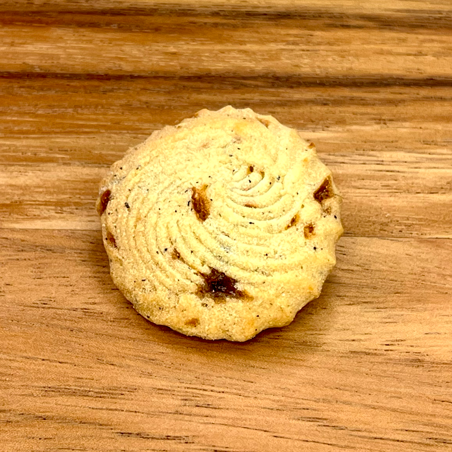 ざくざくとした食感の絞り出しクッキーに、自家製のカリカリ食感のキャラメルチップを混ぜ込んだ一品です。