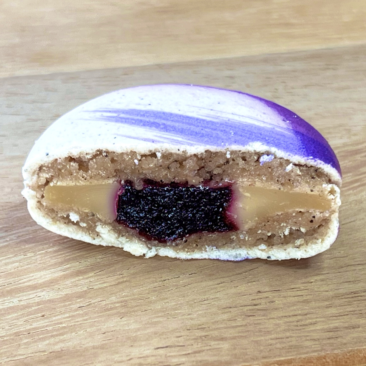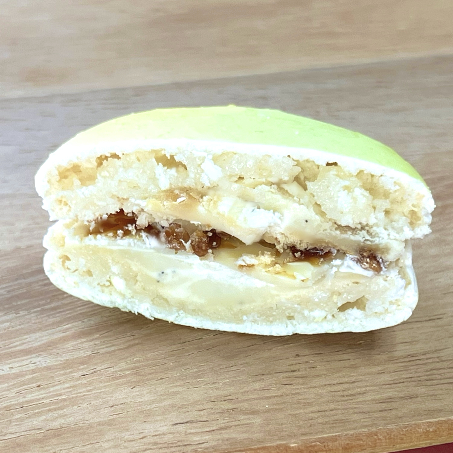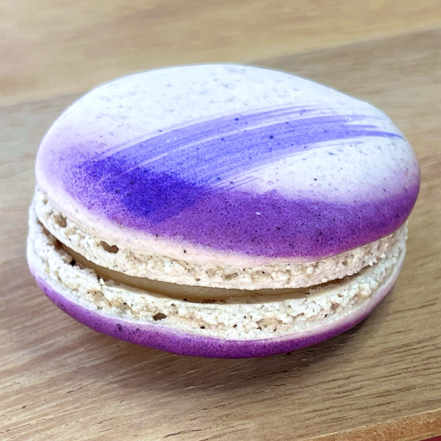 マカロンのフィリングとしてはかなり珍しいのですが、やわらかく炊いたキャラメルを挟むこともあります。