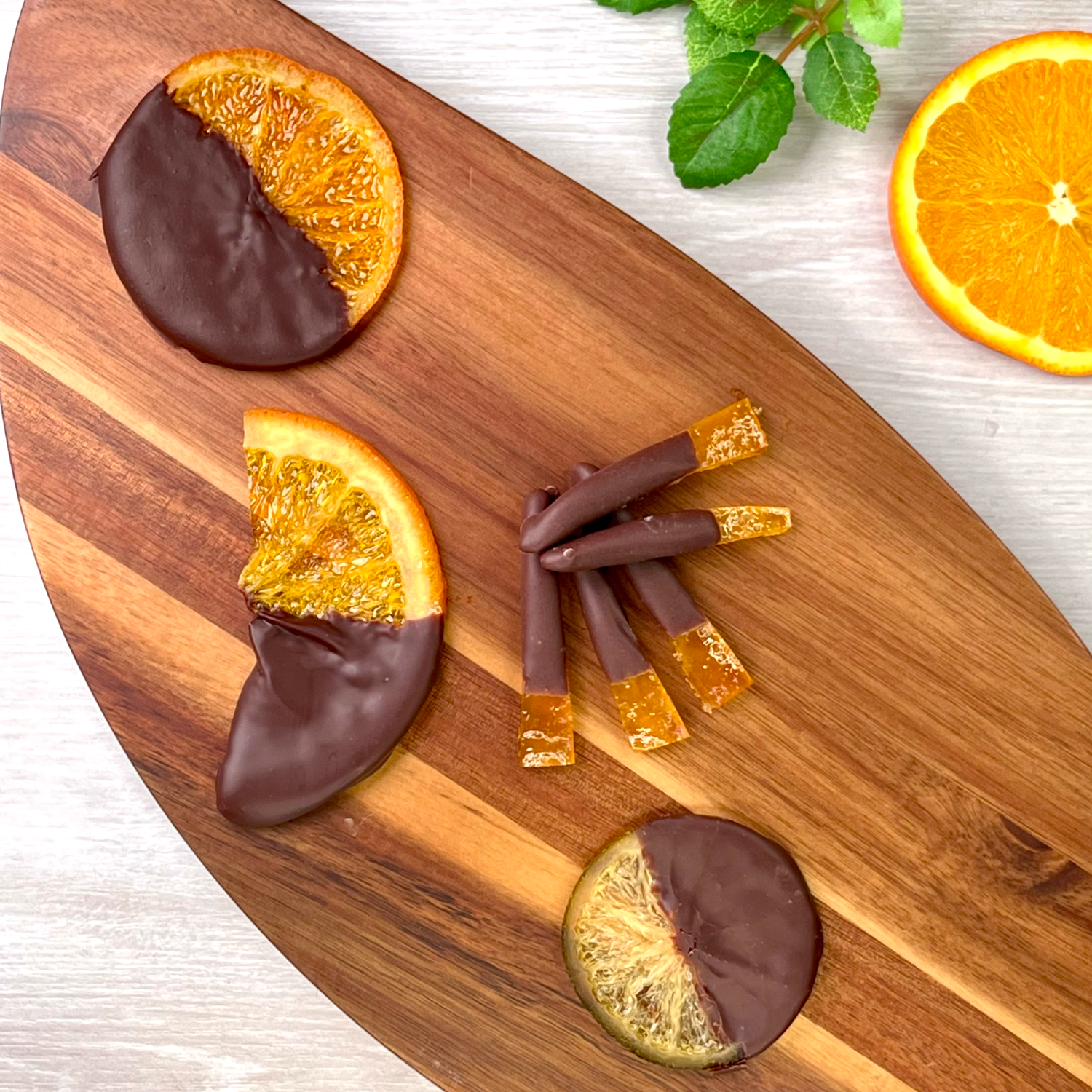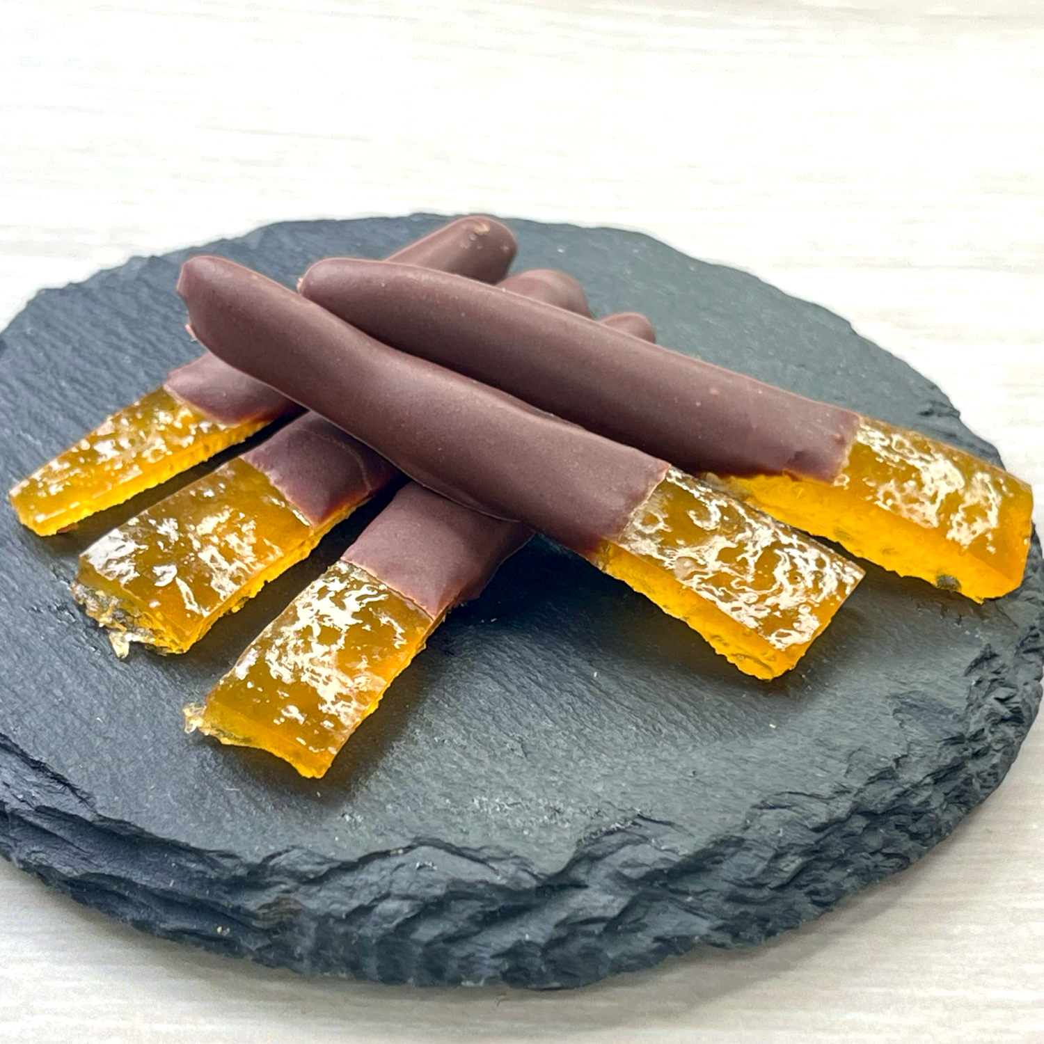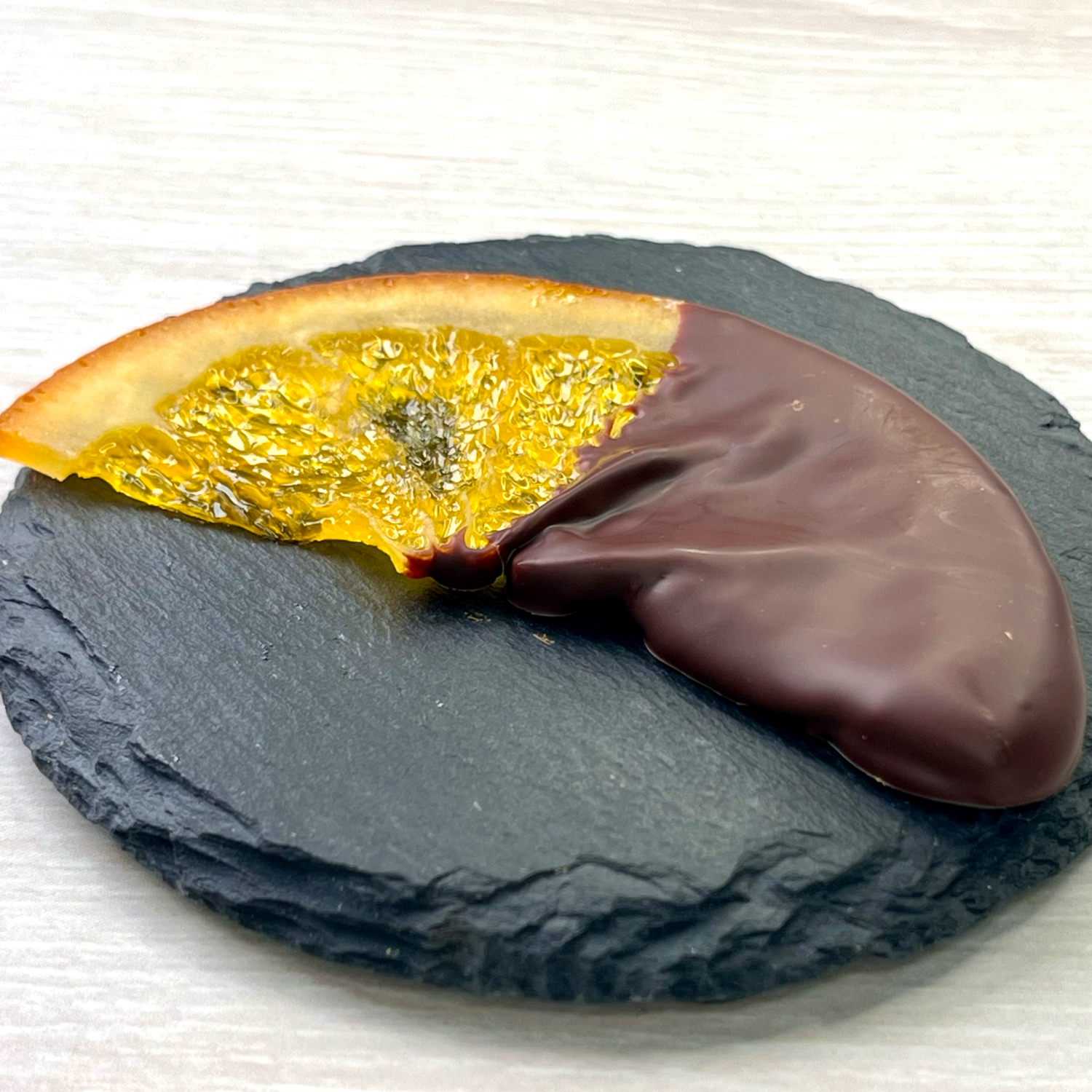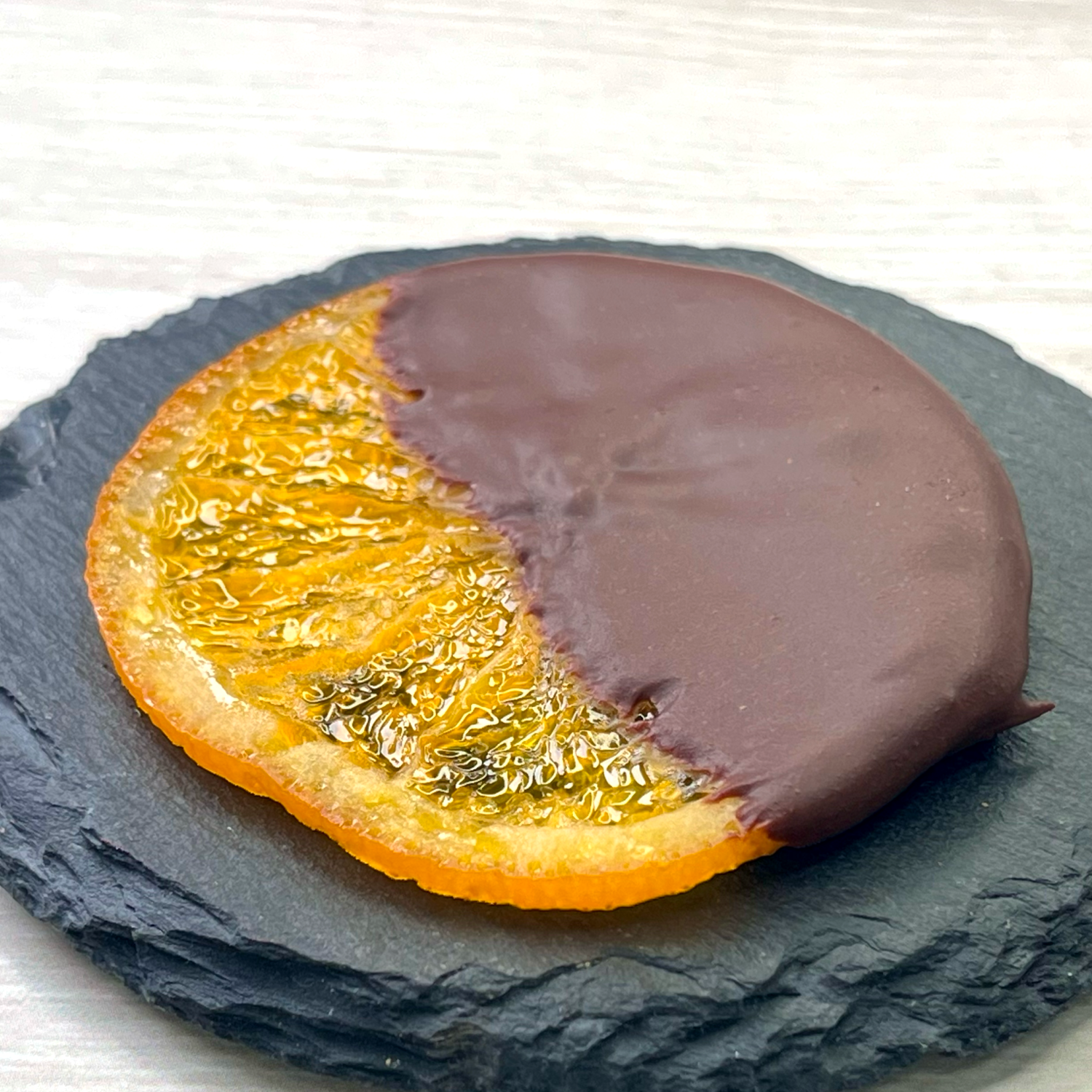 濃厚で華やかな甘さが特徴のネーブルオレンジに、エクアドル産のカカオ豆から作られたチョコレートをコーティングした一品です。