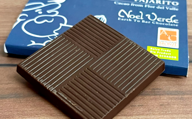 カカオ分74%の板チョコレートに、シロップで煮込みカリカリに乾燥させた黒オリーブのチップが混ぜ込まれている斬新な一品です。