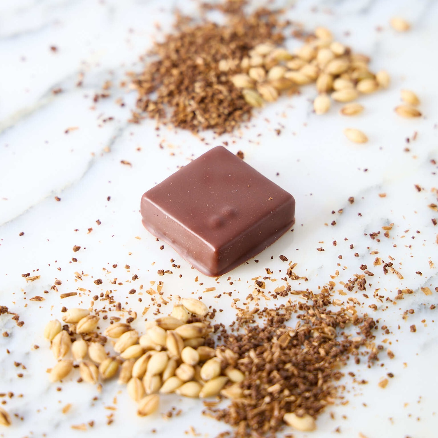 イタリア産の ビターアーモンドとスイートアーモンドをブレンドした自家製プラリネに醤油の発酵由来のフルーティーな香り、旨味を重ねました。