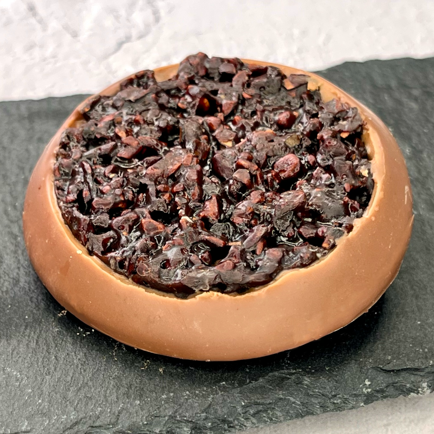 甘く濃厚なピーカンナッツプラリネに、酸味華やかなカカオパルプを合わせることで、より美味しく食べやすく仕上がっています。