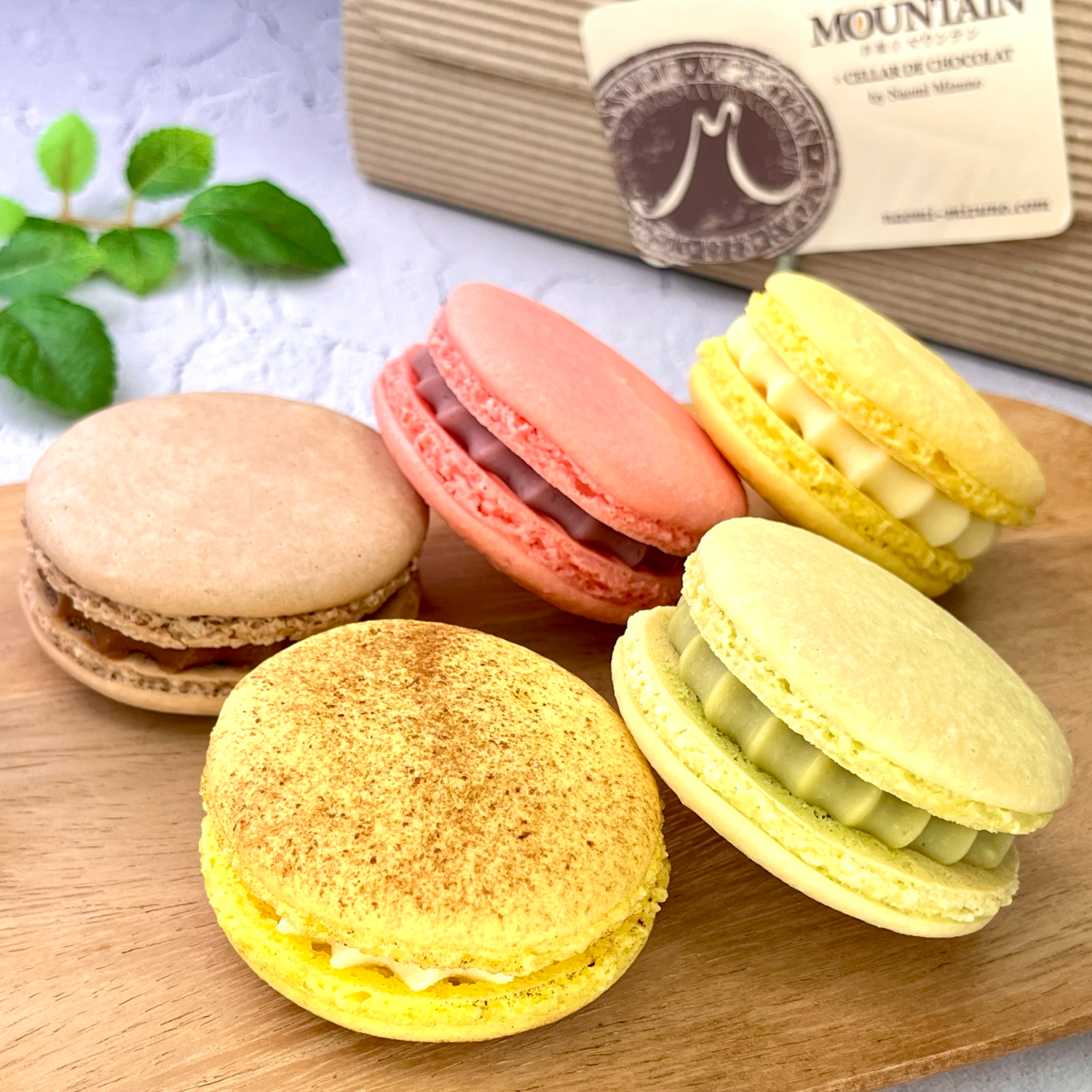 ミルクジャムとガナッシュを挟んだ大ぶりなマカロン5種のセットです。
