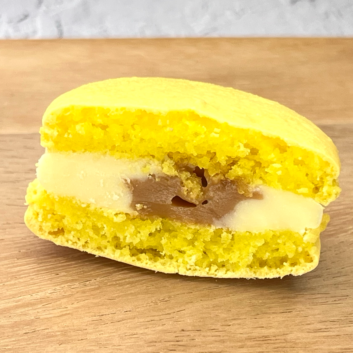 ジャムはマカロンの生地がしけらないよう、しっかりとガナッシュで包んでいます。