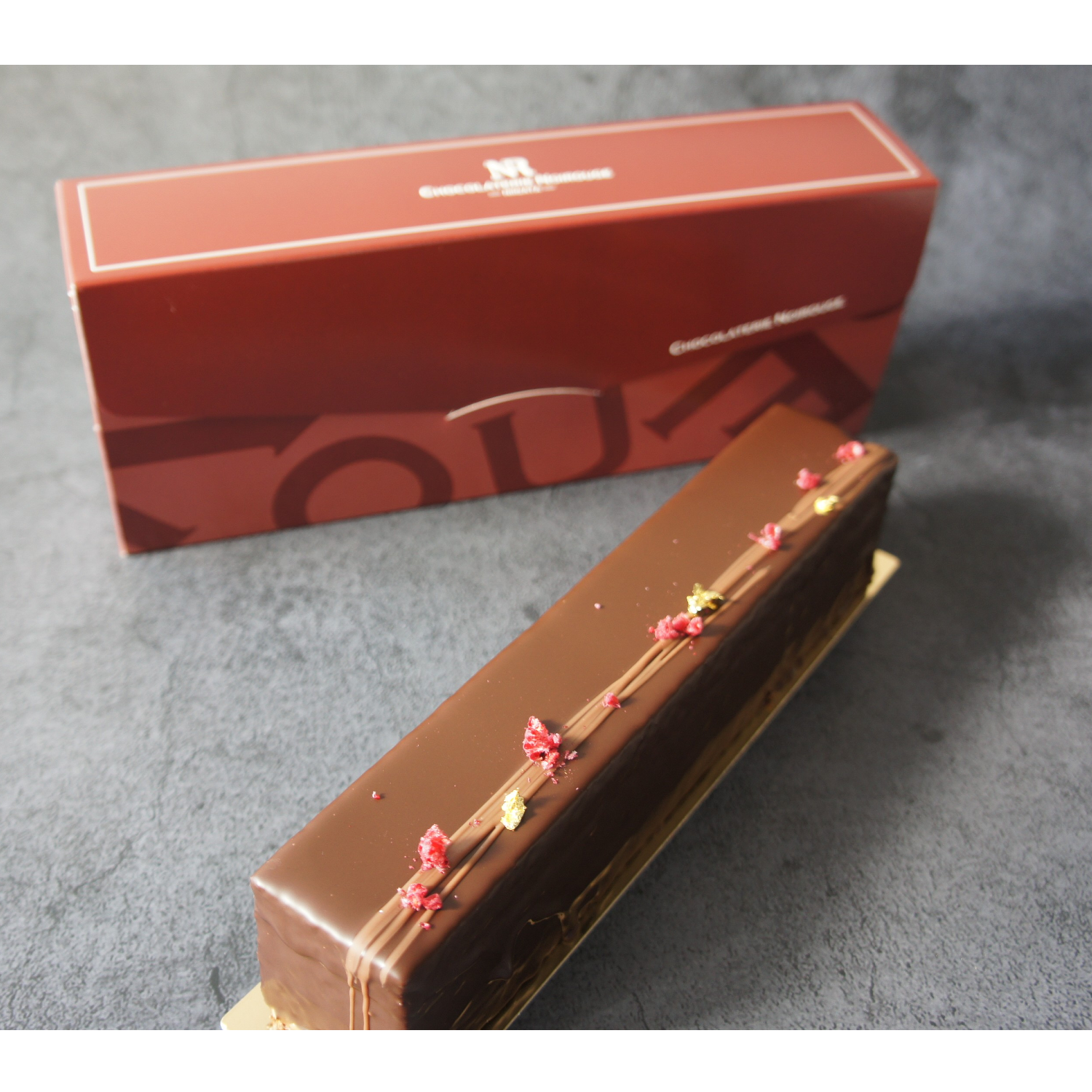 ラズベリーのガナッシュと、ショコラのケーク生地を交互に重ねた、5層仕立ての一品も。