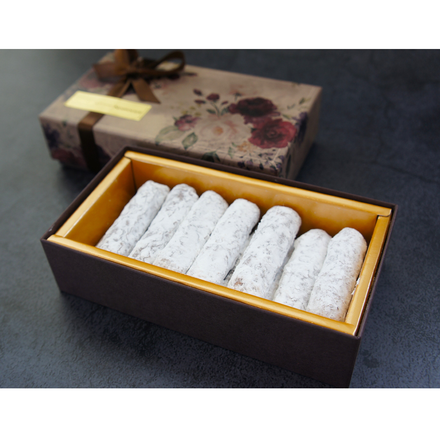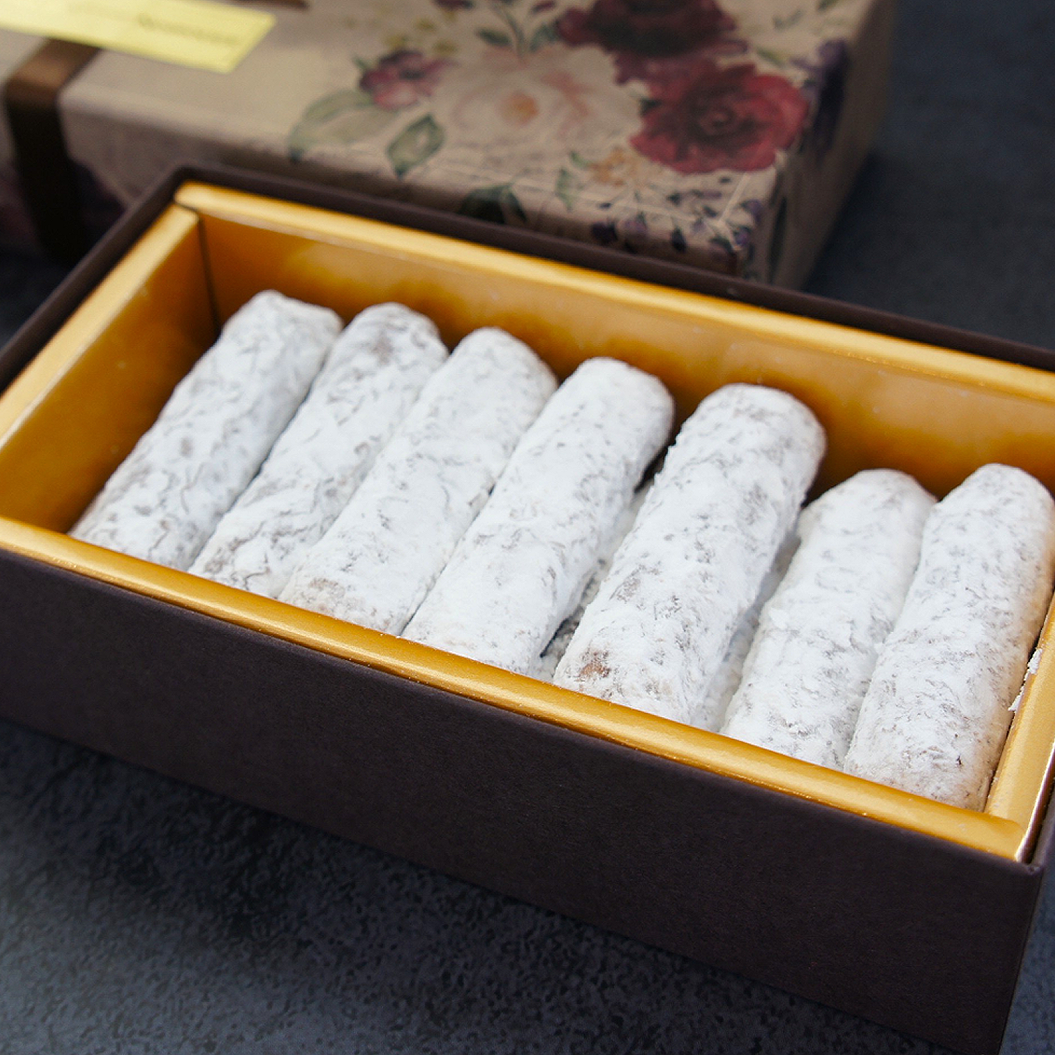ベースになっているのは、「ミュスカディーヌ」と呼ばれる、細長く絞り出したチョコレートのバターガナッシュに、薄くチョコレートと粉糖をコーティングしたフランス菓子です。