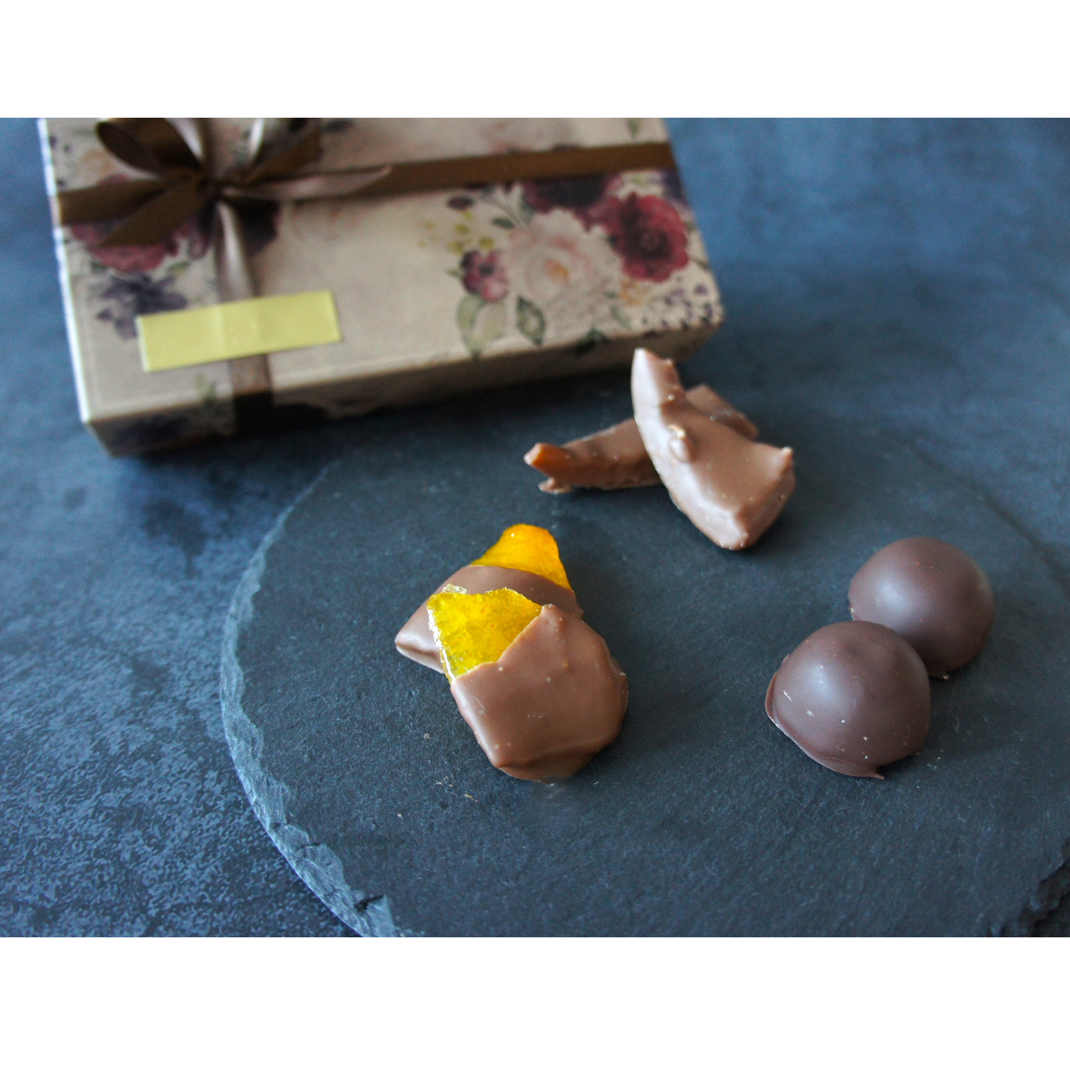 手間暇かけて炊いた柑橘の果皮のコンフィに、相性の良いチョコレートをコーティングした柑橘ショコラ3種類を詰め合わせたセットです。