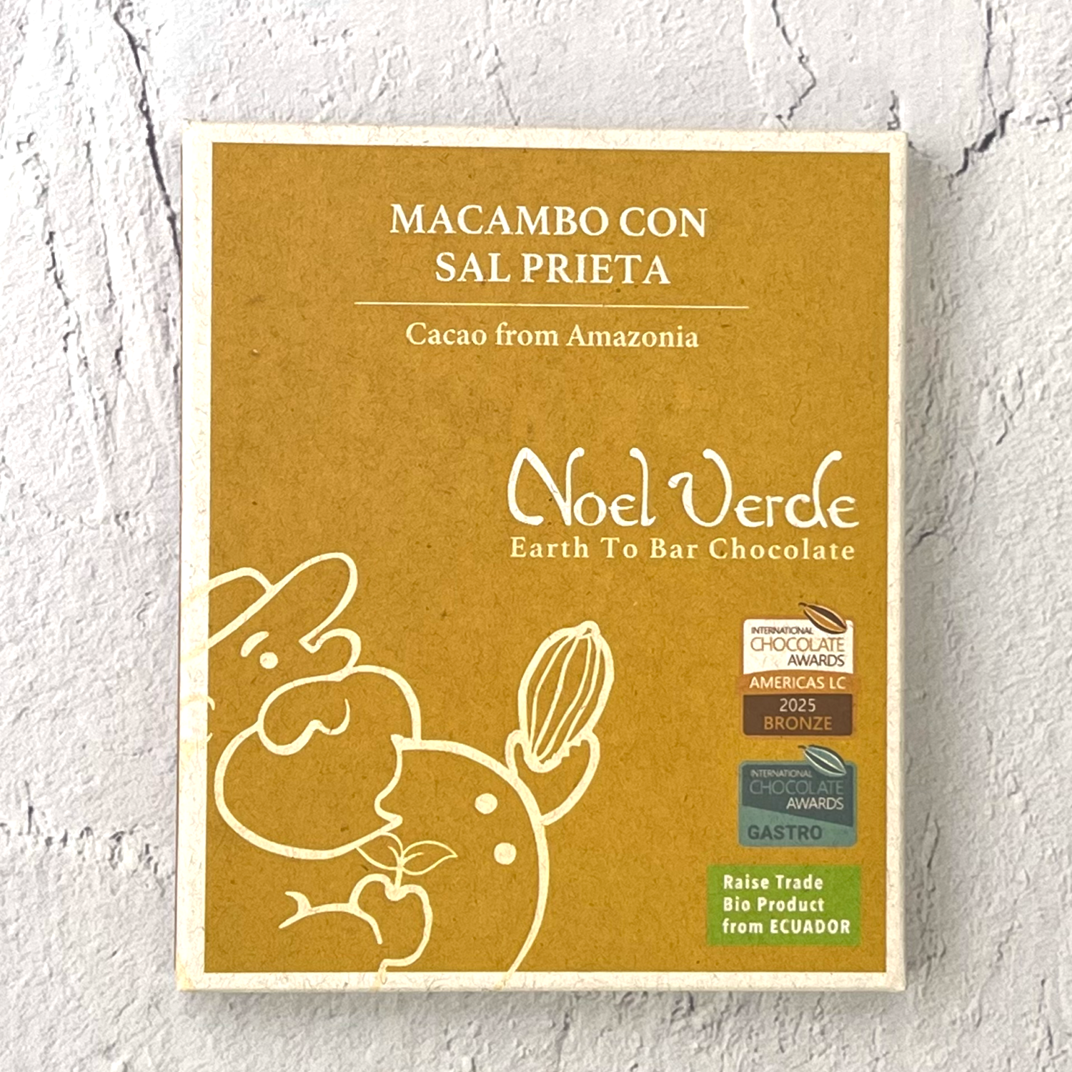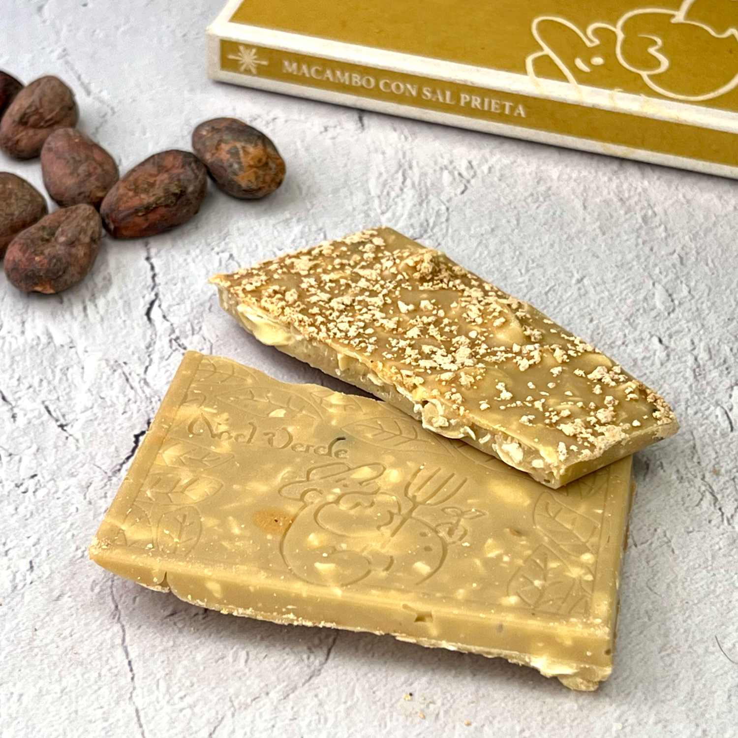 原材料 | マカンボ、砂糖、カカオバター、サル・プリエタ(とうもろこし粉末、ピーナッツ粉末、コリアンダー粉末、植物油、海塩) |